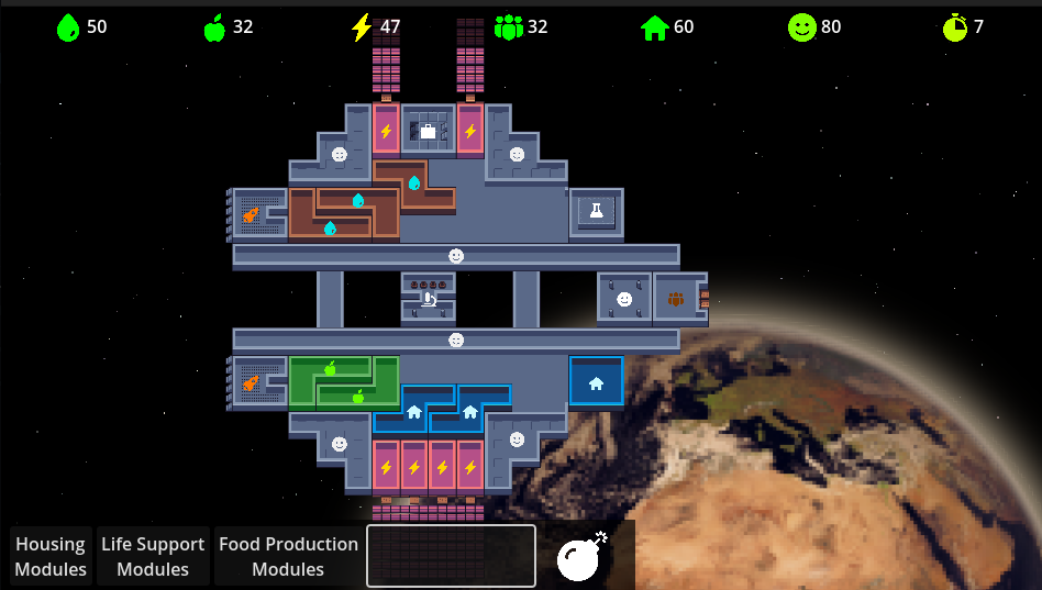 A puzzle/“colony sim” where you must try to accommodate endless waves of refugees on your space station after a cataclysm happened on Earth. Made for the Ludum Dare 54.